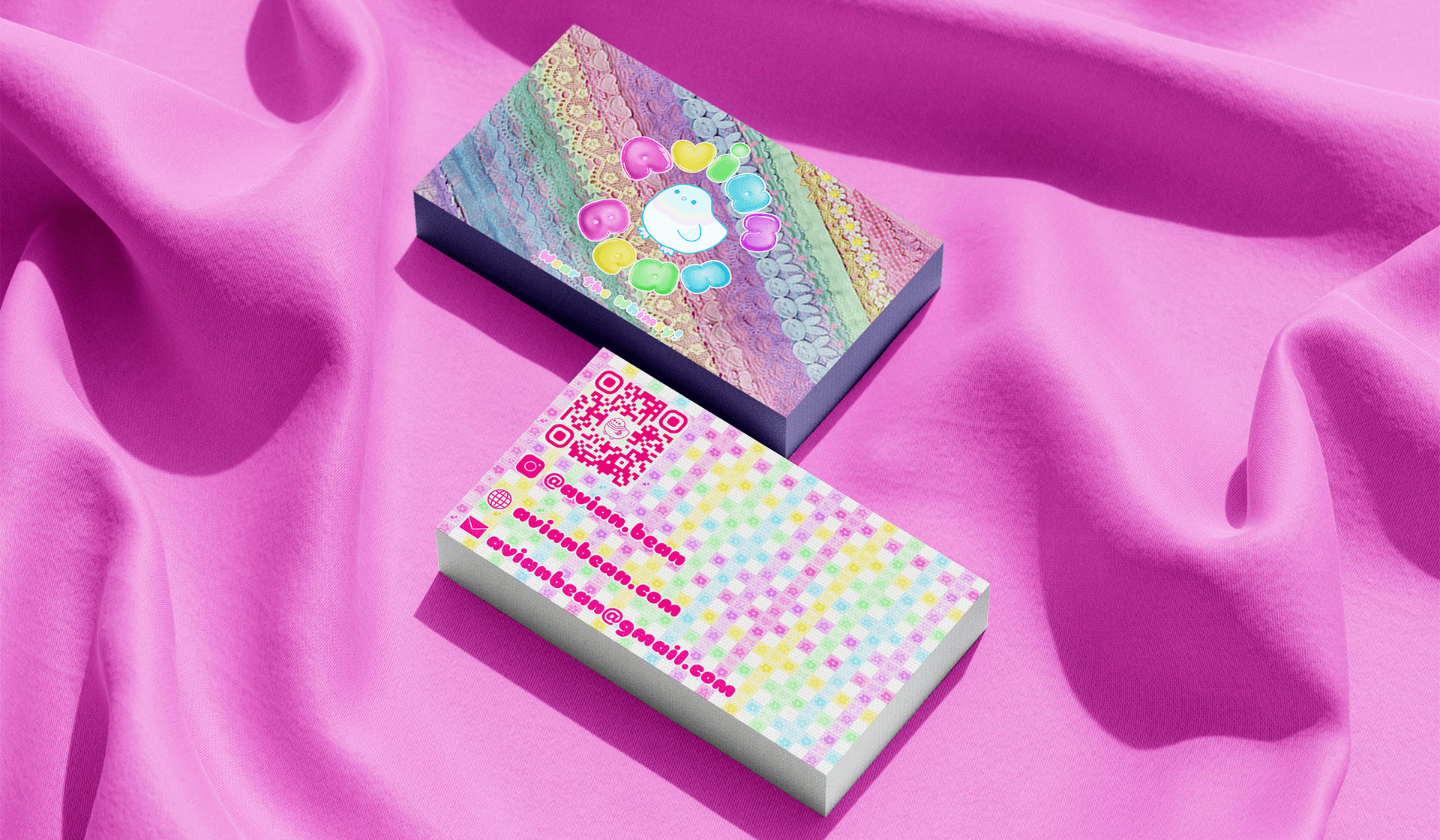 Through 3D Jello-type, and playful and whimsical illustrative characters found within the fabric of his clothing, AvianBean is able to create fashion pieces that are gender-defiant, worn to be treasured, with the goal of spreading joy.
